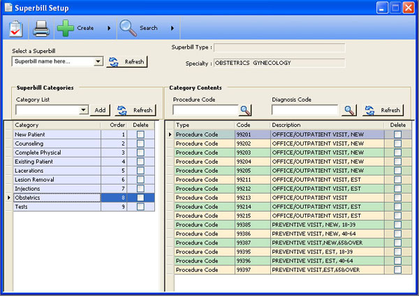 superbill you want. You can define your own categories, add as many as you want of them to the